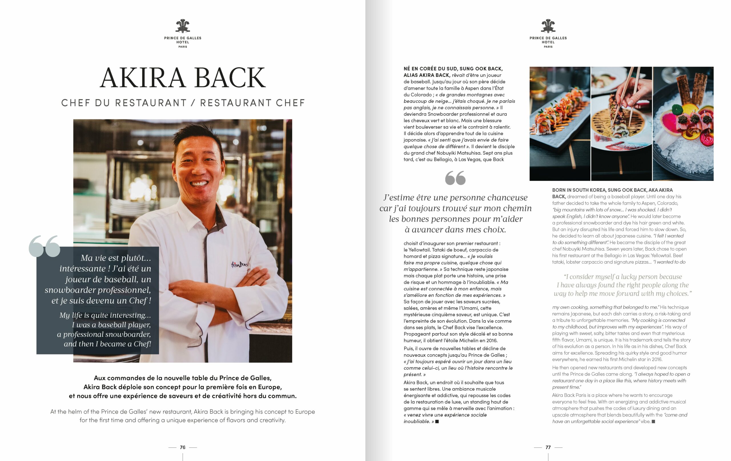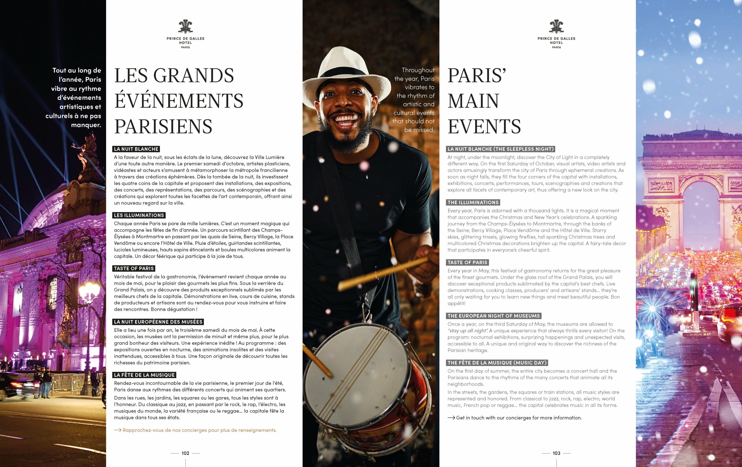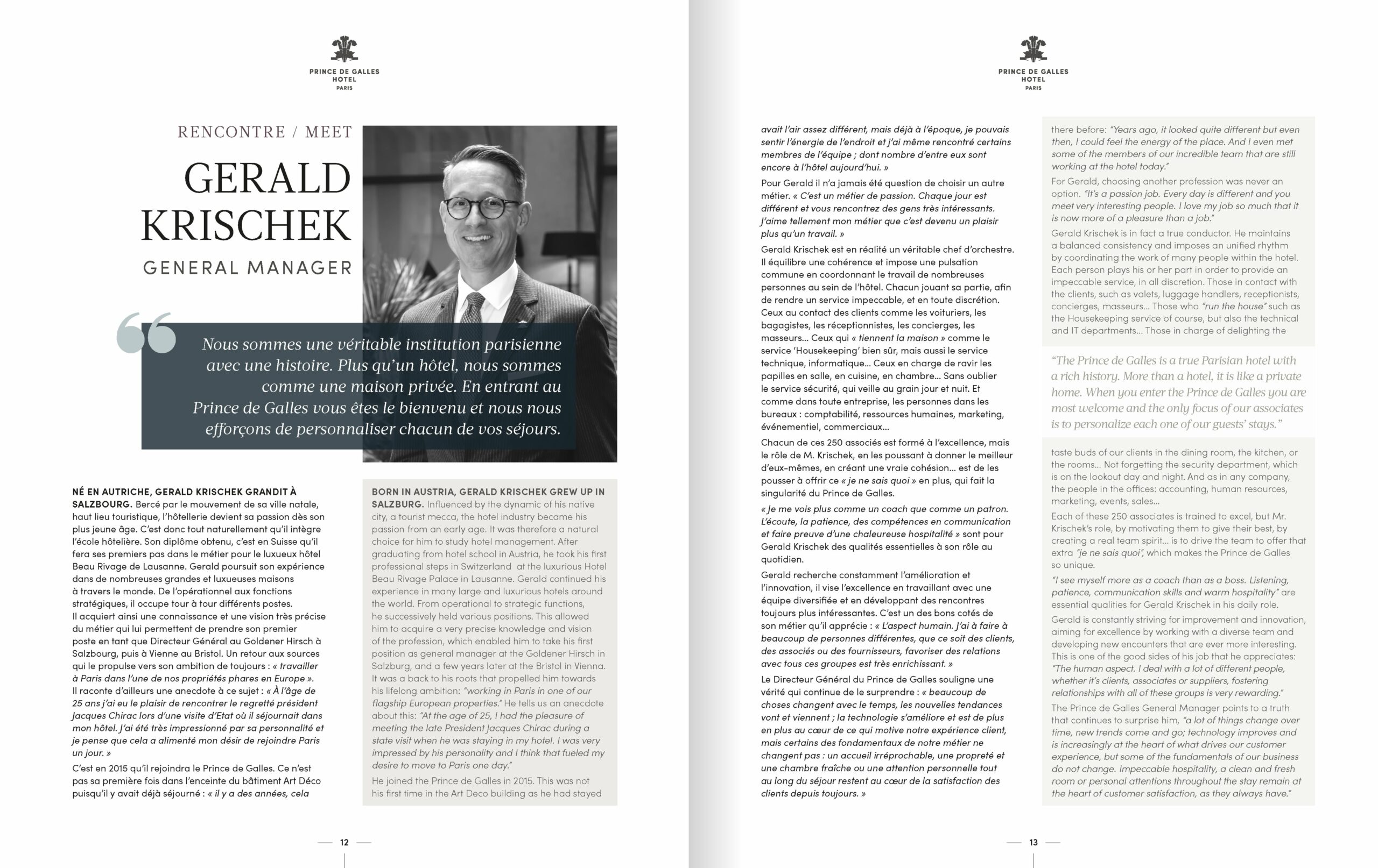Création du magazine de l’Hôtel Prince de Galles à Paris ; Hôtel 5 étoiles The Luxury Collection.